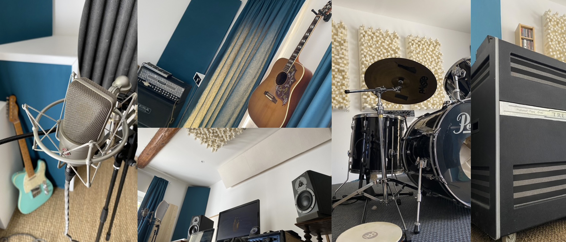 Studio / Room de 25 m2 situé proche de Quarante / Cebazan / Cruzy (34) pour prise de son tout instrument, mixage, préprod en groupe (4 pers. max), petit mastering, composition. Possibilité de logement, piscine.